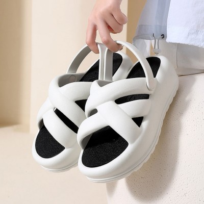 뒷쪽 끈이 있어 물놀이에 편하며 6CM 굽높이 입니다
